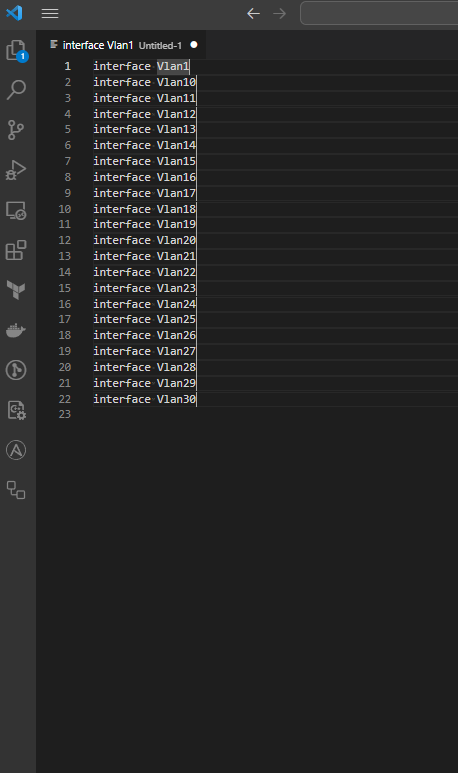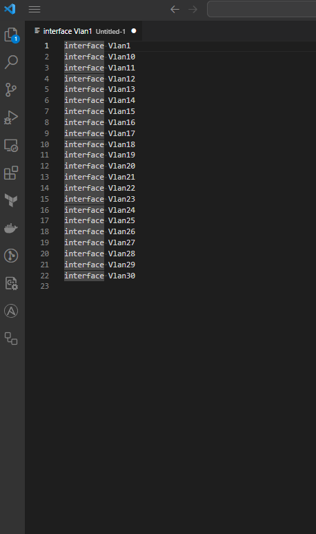 For our next use case, let’s say we need to add one or more lines of configuration to multiple interfaces on a network device. For example, let’s say you need to add the no ip redirects command to several dozen or hundred SVIs on a core switch to disable ICMP redirects. Configuring this manually would be painful, and even if you wrote a Python script to do it, it would take longer than the block select method.
