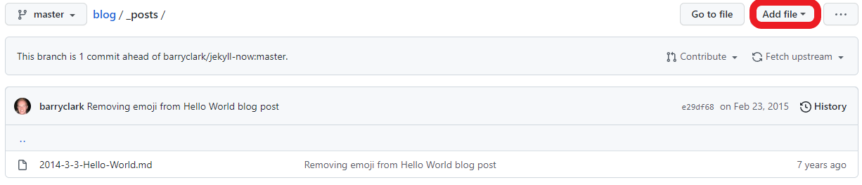 You will see a single file in this directory named 2014-3-3-Hello-World.md, which is a sample blog post included in the repository.