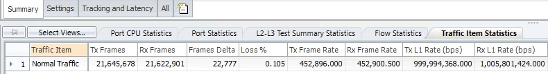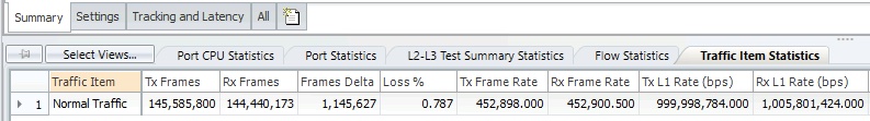 If we check on the Ixia traffic statistics for our production traffic, we can see a fair amount of packet loss has crept into our production network.